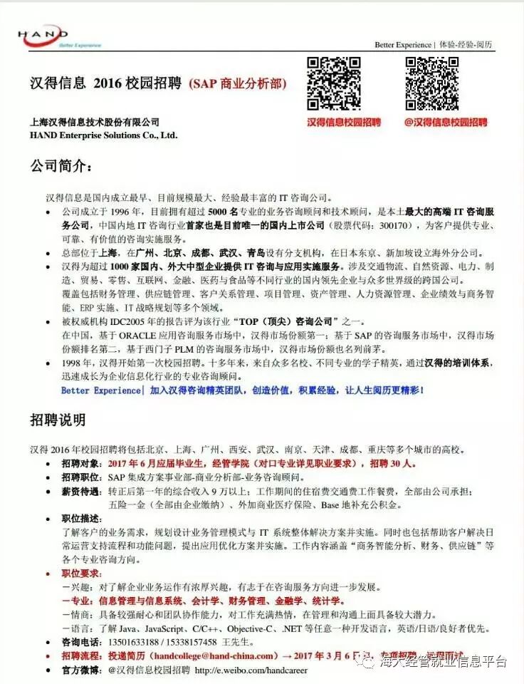 上海汉得2017应届毕业生招聘-海南大学经管学院
