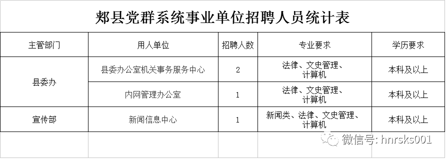 不限户籍,有编制,平顶山郏县党群系统事业单位要招聘【时间1.5-1.9】 |
