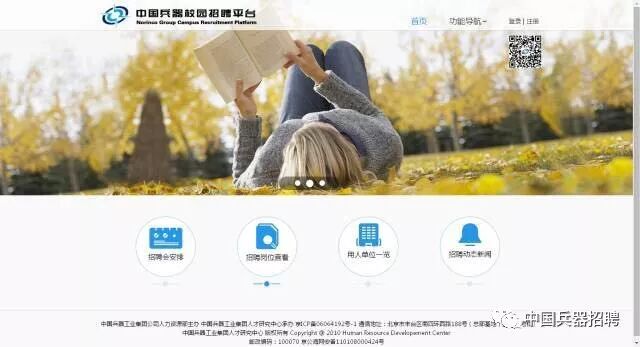 材料类 材料成型及控制工程、金属材料工程、材料加工工程、高分子材料等 机械类 机械制造及自动化、机械电子、车辆工程、自动化、力学基础、工程力学等 电子类 电气工程及其自动化、电子信息工程、信息通信工程等 武器类 计算机类 计算机科学与技术、计算机系统结构、计算机软件与理论等 招聘行程 如何应聘 了解中国兵器工业集团有限公司2018届高校毕业生招聘信息(包括职位需求、招聘行程、简历提交等),请登录中国兵器唯一官方校园招聘平台(ww***088[点击查看])。更多相关招聘信息请随时关注此微信公众号及参加集中招聘会。 中国兵器校园招聘平台门户 中国兵器工业集团有限公司 盛情邀请您的加入 共同打造 有抱负、负责任、受尊重 的国家战略团队! 一切准备就绪! 静待您来! 相关招聘单位的详细简介和岗位信息已在我们的校园招聘平台推出,扫二维码关注,抢先锁定您心仪的职位!