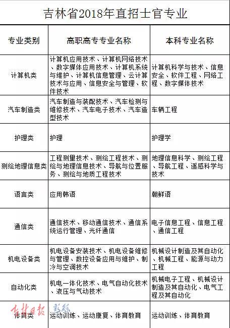 今年,我省从普通高等学校毕业生中直接招收士官任务为93人。招收专业包括:计算机类,机电设备类,通信类,汽车制造类,自动化类,语言类,体育类,护理类和测绘地理信息类共9类专业。