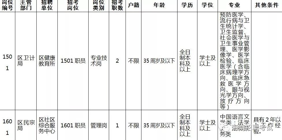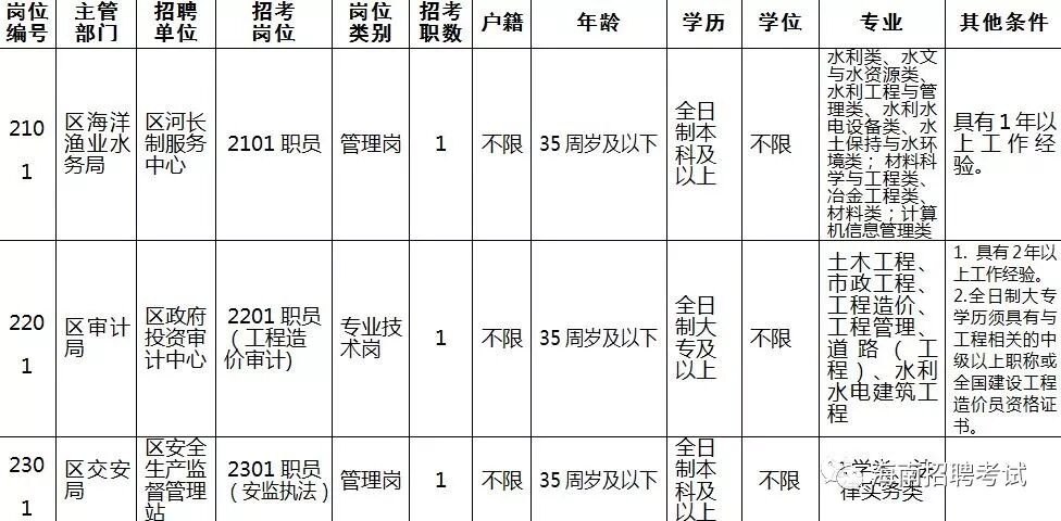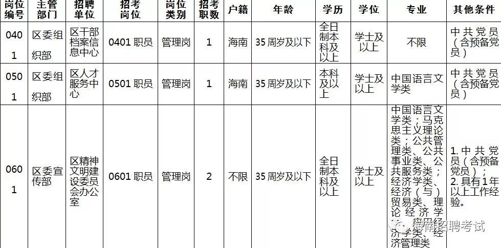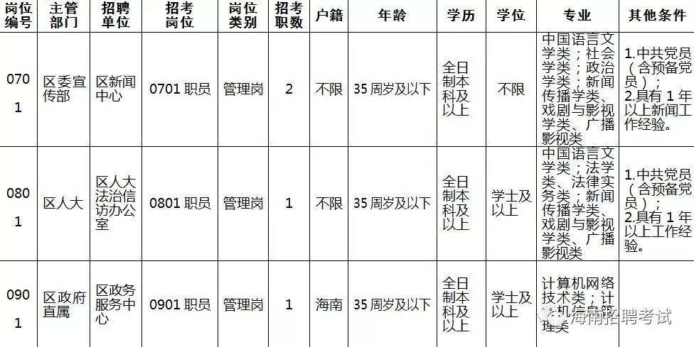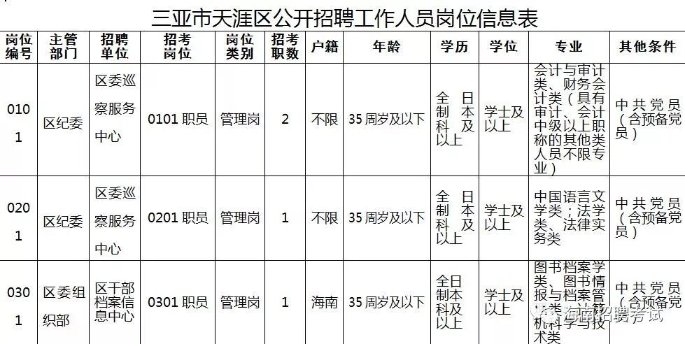 各岗位具体招聘条件及人数见《三亚市天涯区公开招聘工作人员岗位信息表》(附件1)。