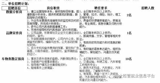 中国平安财产保险股份有限公司海南分公司是中国平安在国内设立的第一家省级分支机构,成立于1988年。经过长期稳步发展,已在海南财产险市场拥有稳定的市场地位,目前拥有3家市级支公司、20家县级支公司和营销服务部,近600多人的员工队伍,服务网点遍布全省各市、县。现因公司发展需要,拟招聘:数据分析岗,品牌宣传岗、车物查勘定损岗等岗位。以下岗位一经录用,除享受丰厚待遇外,公司还将提供六险两金、教育培训、年度体检、过节费、各类带薪休假、旅游激励等员工福利。