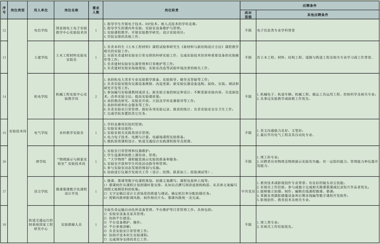 实验技术岗位:8人(以学院实验专业技术岗位为主)