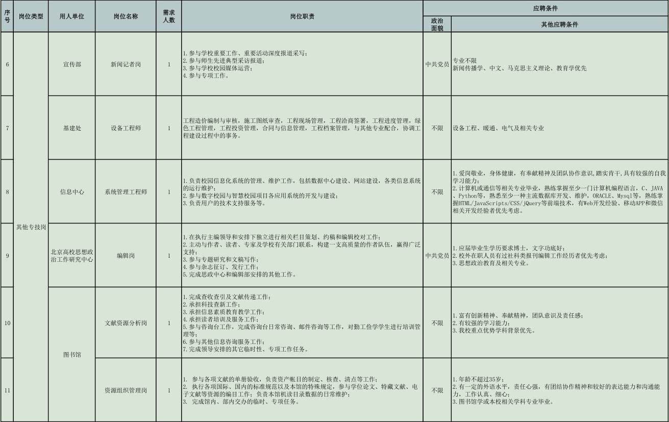 其他专技岗位:6人(以学校职能部处、直属单位专技岗位为主)