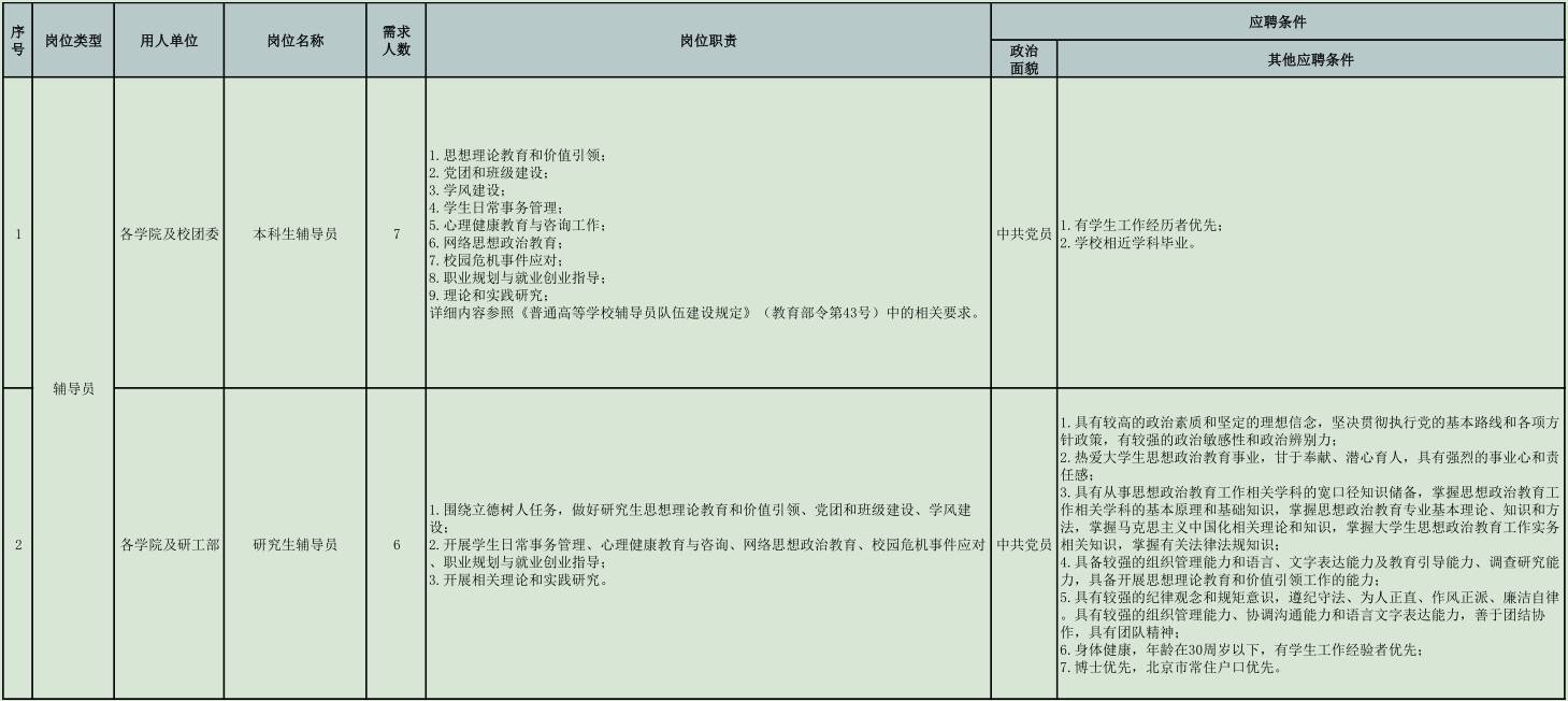 6/ 满足学校各用人单位《岗位需求信息表》中“应聘条件”要求。