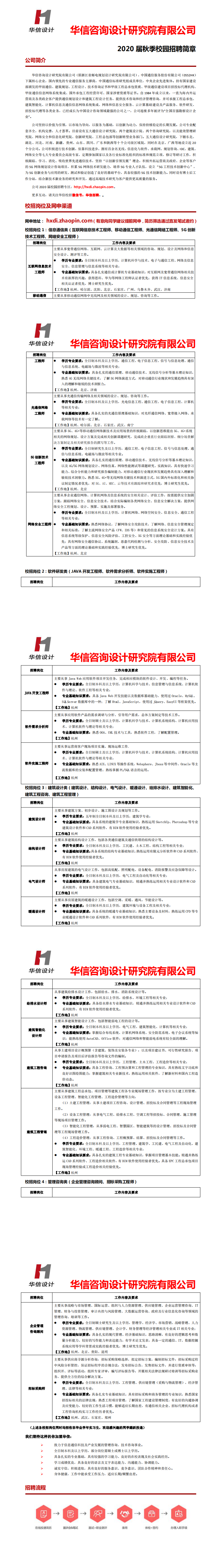 标题 | 华信咨询设计研究院有限公司招聘 | 招聘截止日期 | 2019-12-31 | |