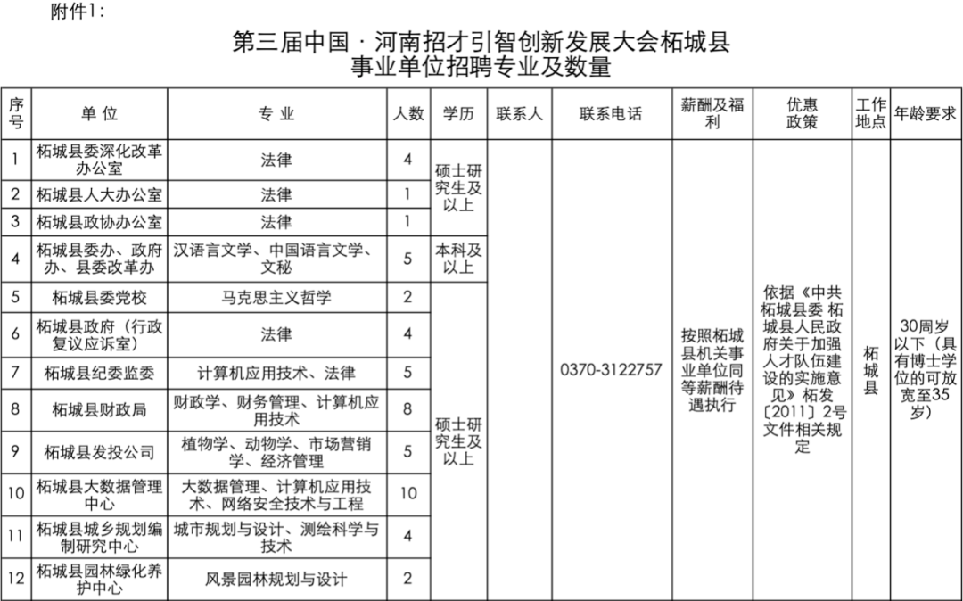 3、本次招聘的高层次急需紧缺人才公告由中国·河南招才引智创新发展大会柘城县组委会办公室负责解释。未尽事宜按国家、省、市有关规定执行;